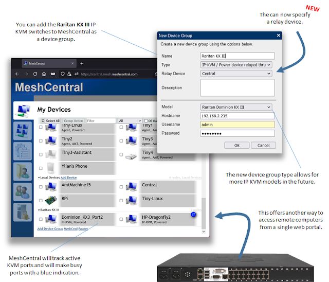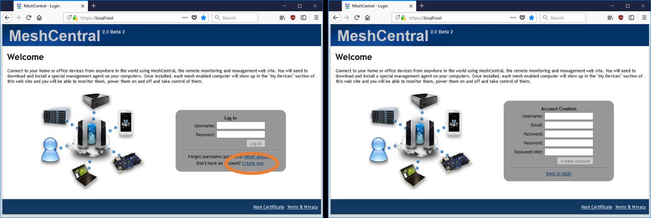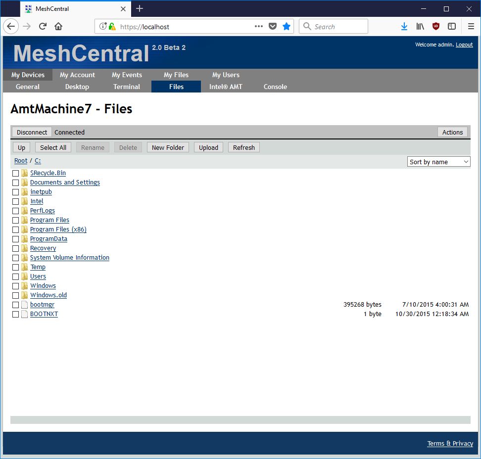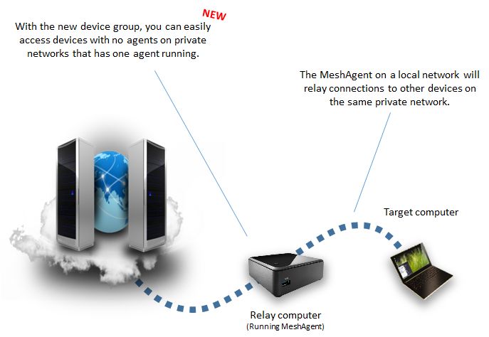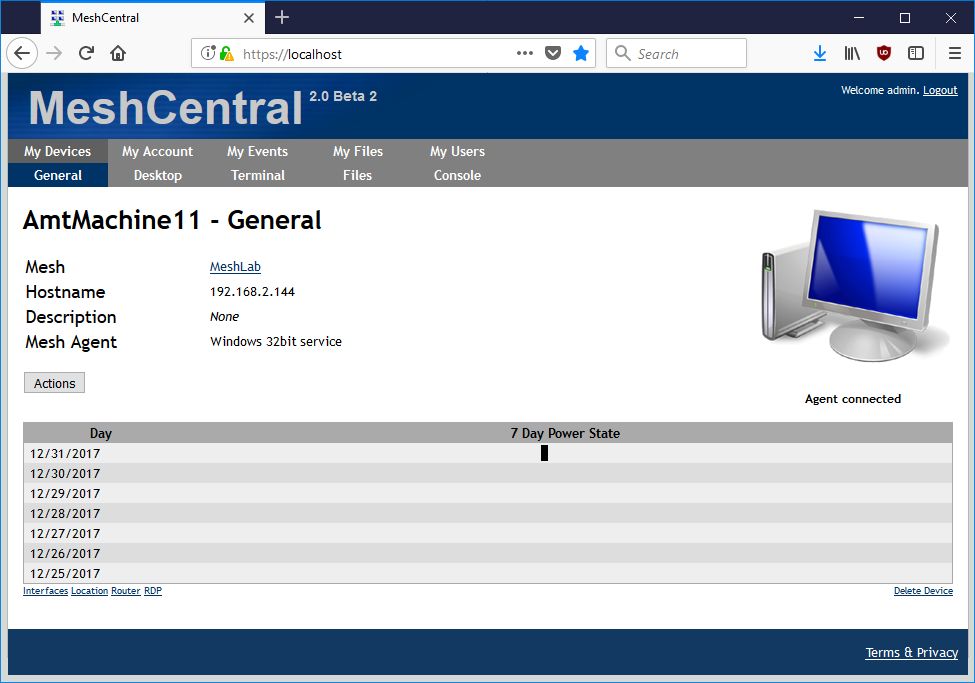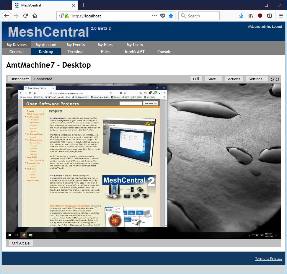 With MeshCentral1, administrators have to install the MeshAgent software on all computers, even if it was only for used for Intel AMT. MeshCentral supports a new agent-less mesh type that allows administrators to just setup the server strictly for Intel AMT only.