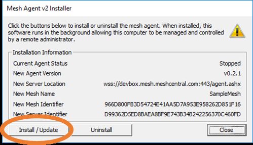 For Windows*, the mesh agent doesn’t contain any sensitive data and can copied and reused on many Windows* computers.