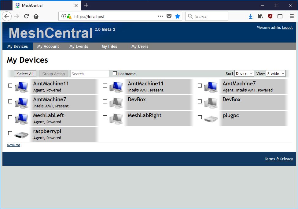 refreshbutton to update the web page. The web interface is completely real-time and updates as things change. MeshCentral uses websockets to connect to the server and get real-time events. - Single Programming Language –