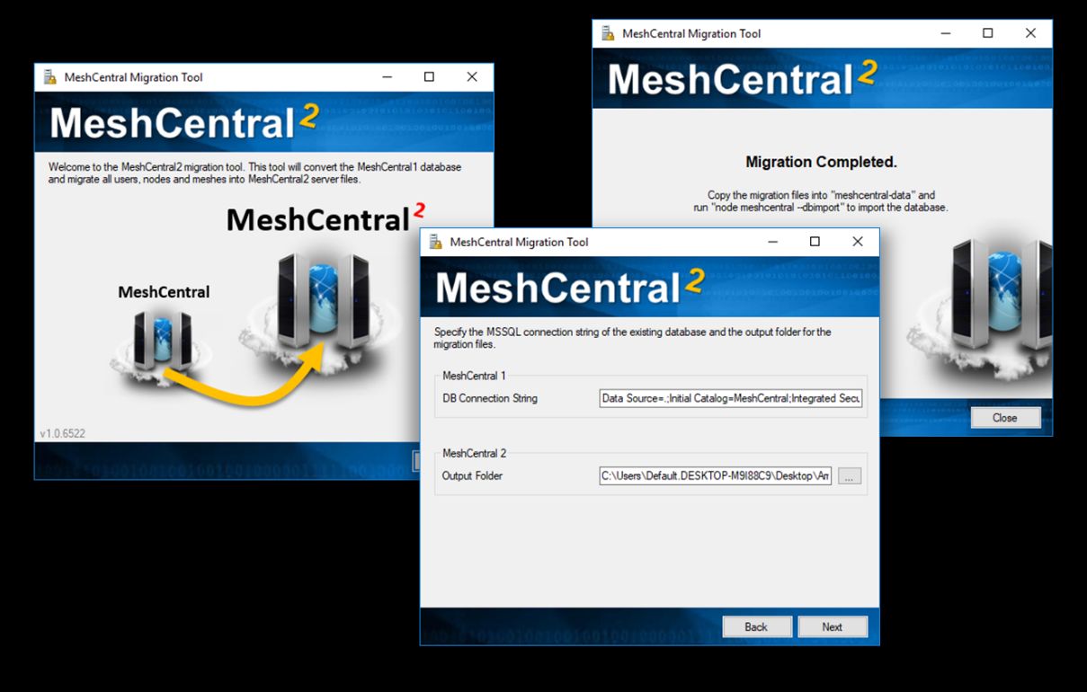 In addition to the migration tool, MeshCentral has a special module that will update all MeshAgents from v1 to v2 so the transition should be simple.