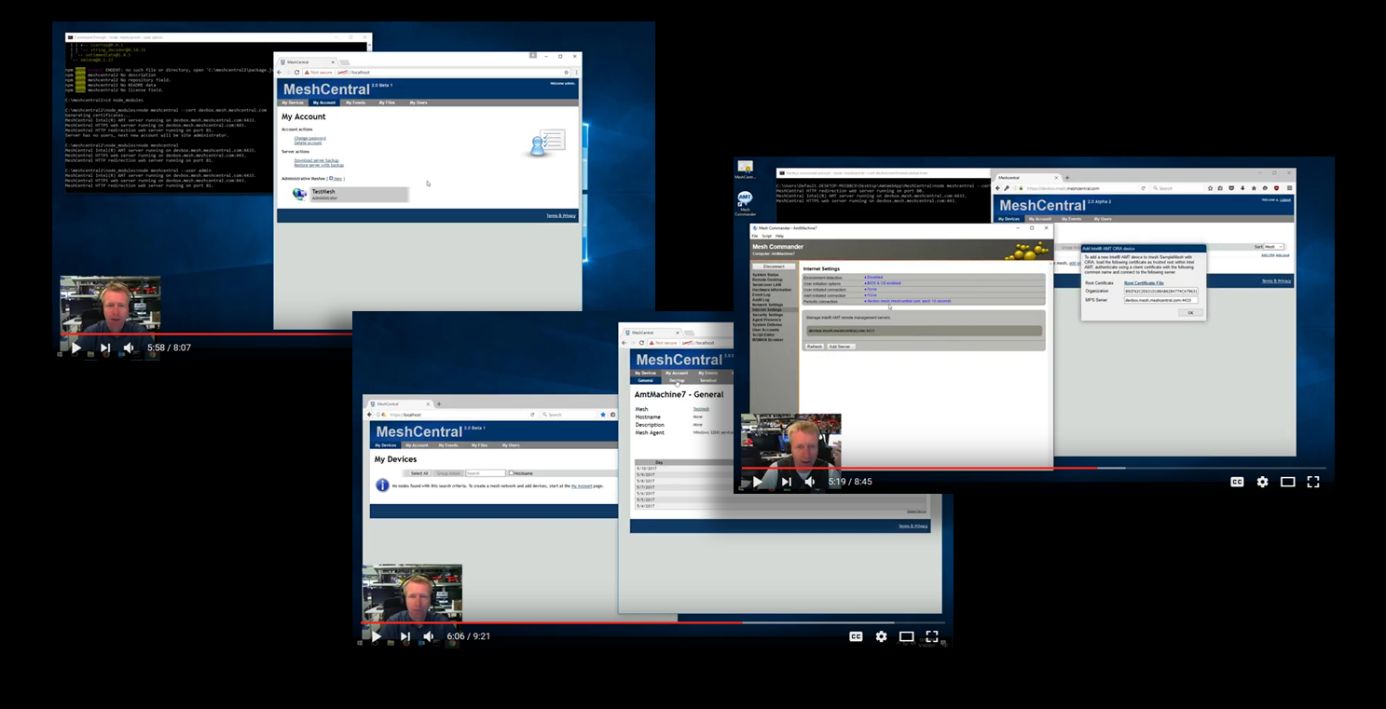 In addition to this document, there are a growing set of MeshCentral tutorial videos available on YouTube which covers all of the basic at www.meshcommander.com/meshcentral2/tutorials . The tutorial includes videos on how to perform server installation using both the Windows MSI installer and NPM methods.